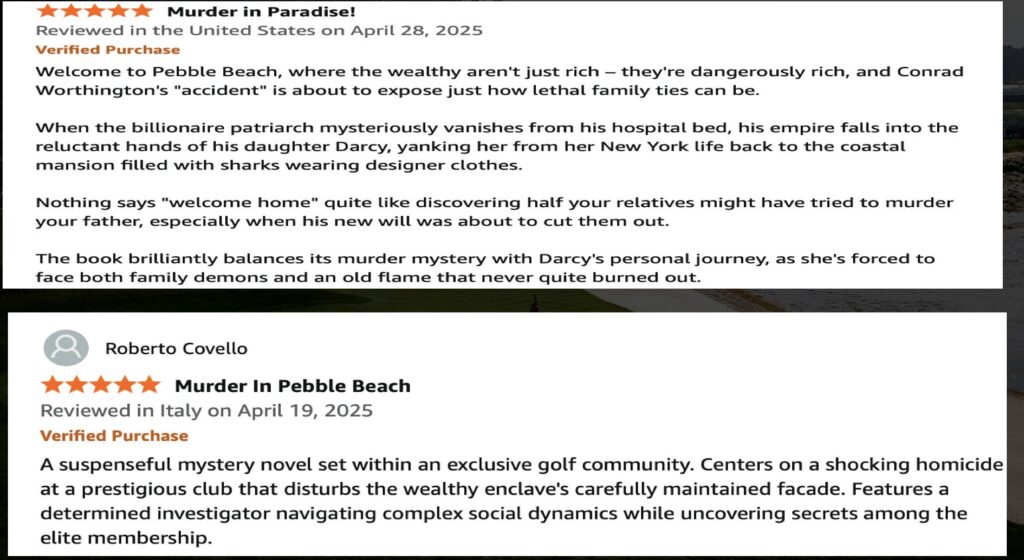 As I continue my growth and development as a director, screenwriter and author, (“Murder in Pebble Beach – Mystery in The Clubhttps://www.amazon.com/Murder-Pebble-Beach-Mystery-Club/dp/B0DT28G6RL) I’m getting more into the financing side of movies and TV, and I’m also about to finish my second book in the the series. I’ve found that writing a second book seems to bring a lot more pressure than the first, as I know how hard the road ahead will be. Book two will continue the journey of those original characters but expand into new ones as well. And on the film side, I have always wanted to work more closely on the producing and financing side and that is all starting to happen organically. So these two things are now on my plate…book number two and stepping more into the world of film finance, which are both exciting to me and times a bit intimidating too.